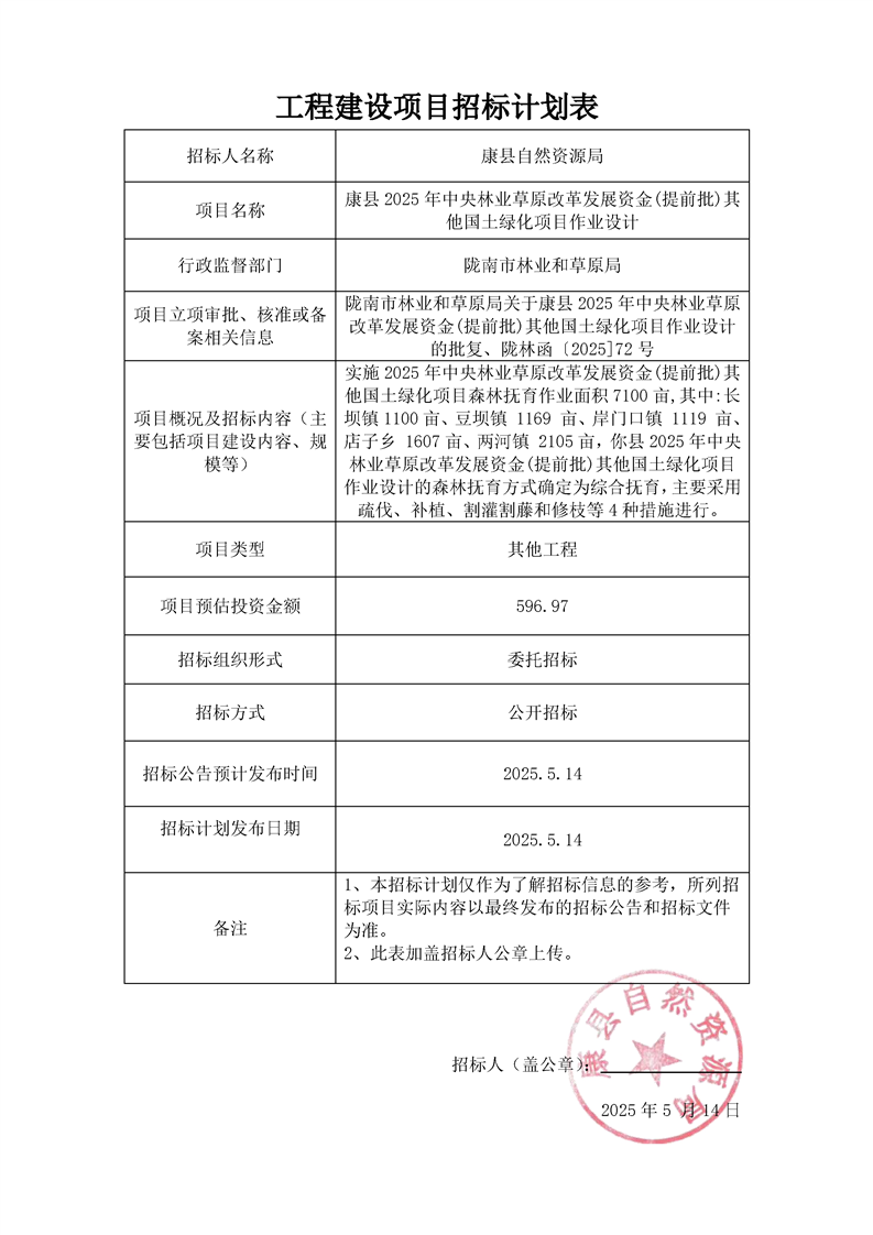 康縣2025年中央林業草原改革發展資金(提前批)其他國土綠化項目作業設計