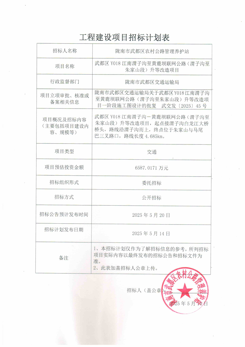 武都區(qū)Y018江南渭子溝至黃鹿壩聯(lián)網(wǎng)公路(渭子溝至朱家山段)升等改造項(xiàng)目