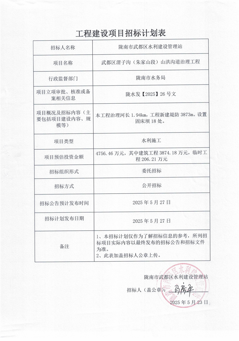 武都區(qū)渭子溝(朱家山段)山洪溝道治理工程