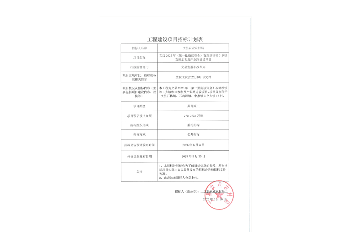 文縣2025年(第一批銜接資金)石雞壩鎮等3鄉鎮農田水利及產業路建設項目