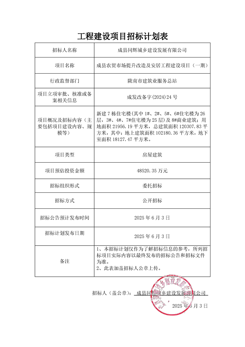 成縣農貿市場提升改造及安居工程建設項目(一期)