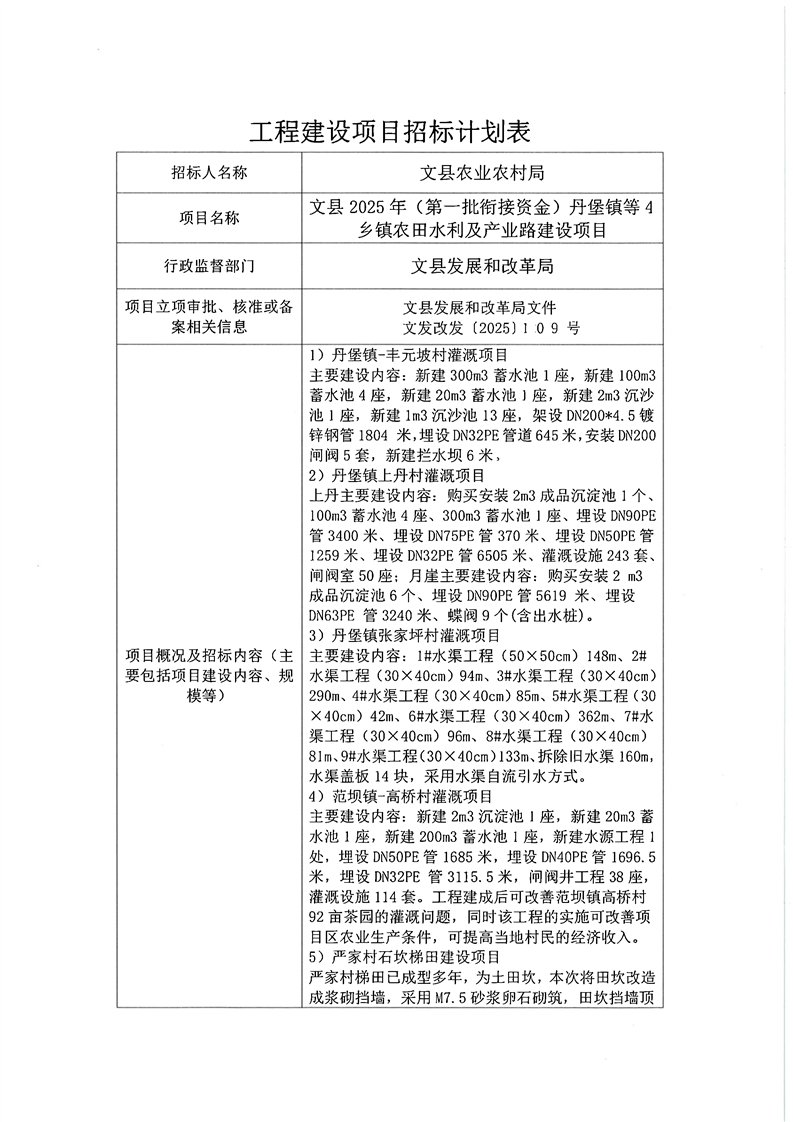 文縣2025年(第一批銜接資金)丹堡鎮等4鄉鎮農田水利及產業路建設項目
