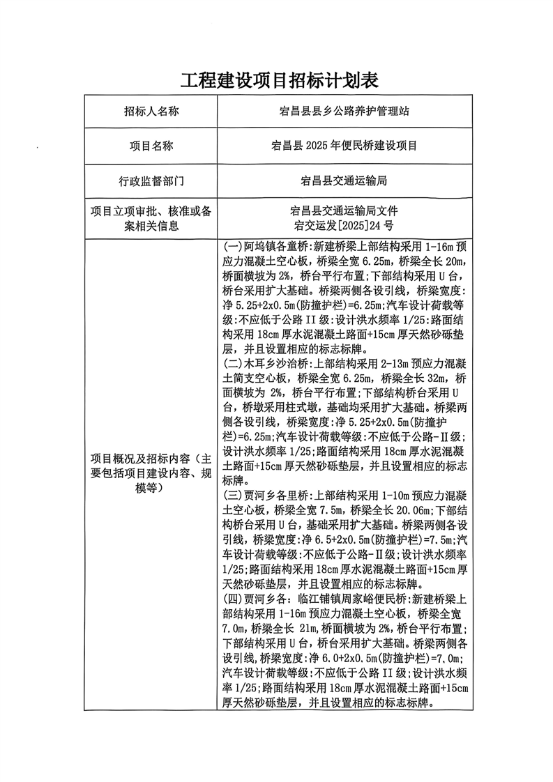 宕昌縣2025年便民橋建設項目