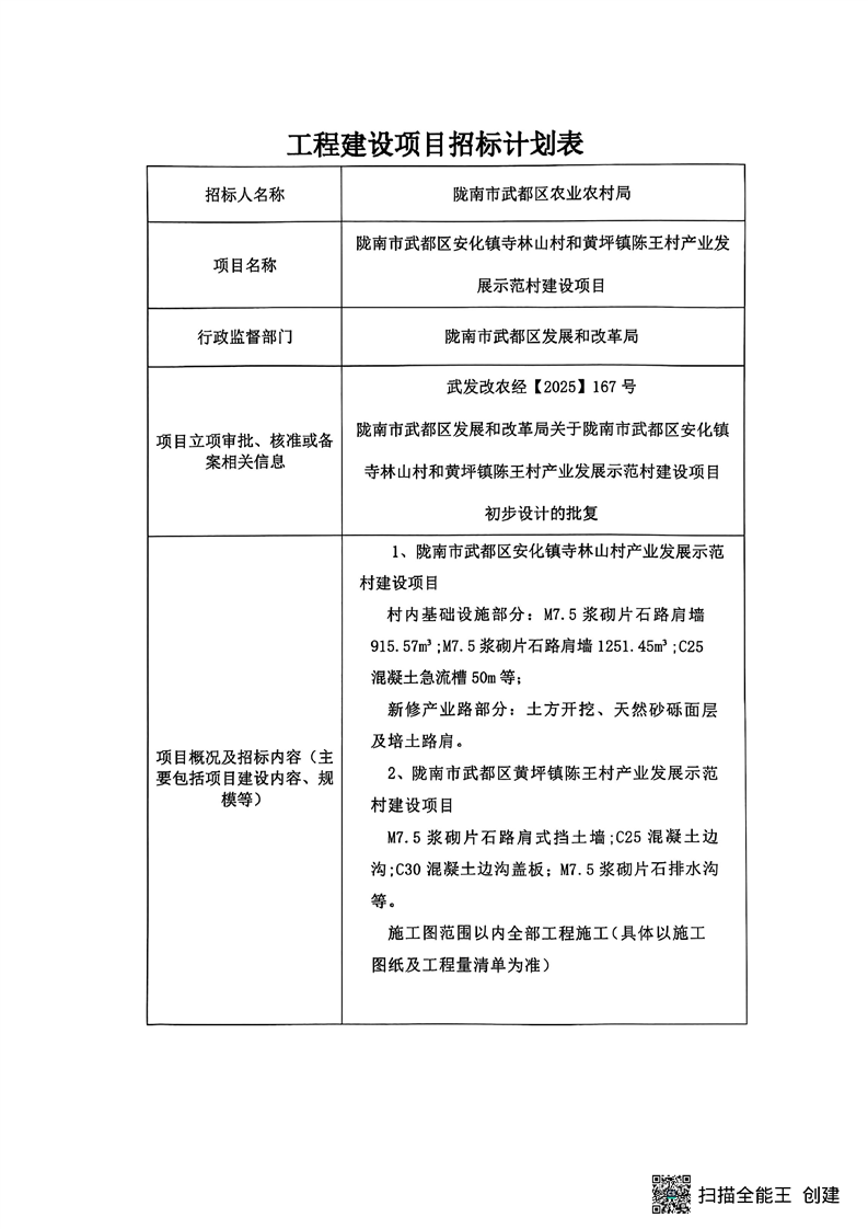 隴南市武都區安化鎮寺林山村和黃坪鎮陳王村產業發展示范村建設項目