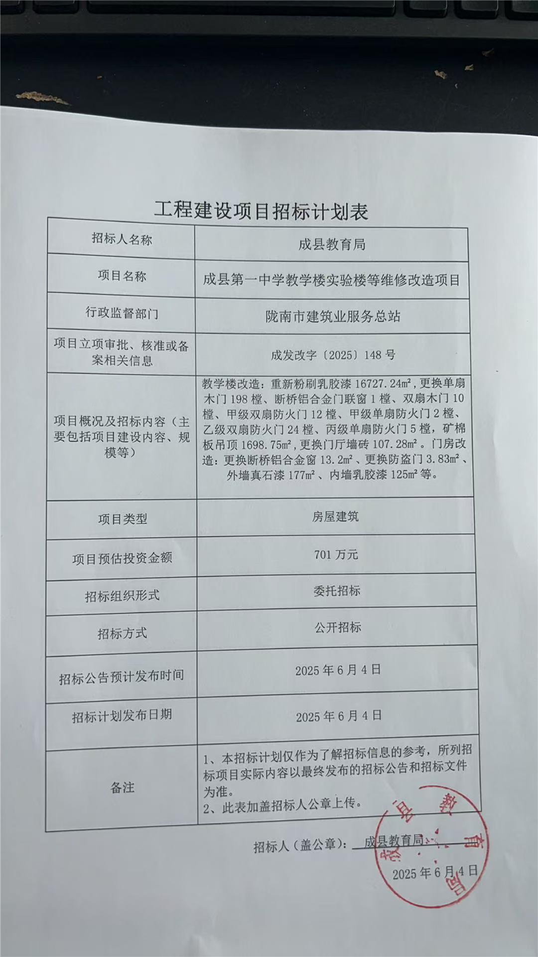成縣第一中學(xué)教學(xué)樓實(shí)驗(yàn)樓等維修改造項(xiàng)目
