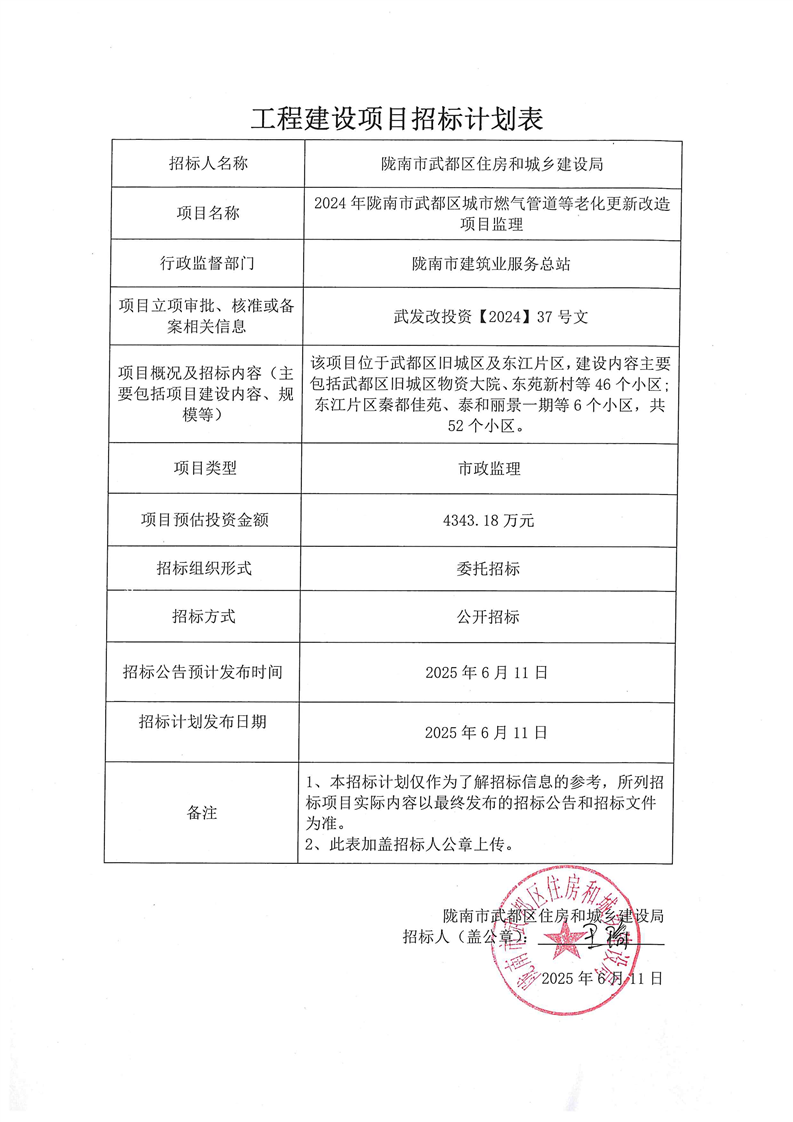 2024年隴南市武都區城市燃氣管道等老化更新改造項目監理