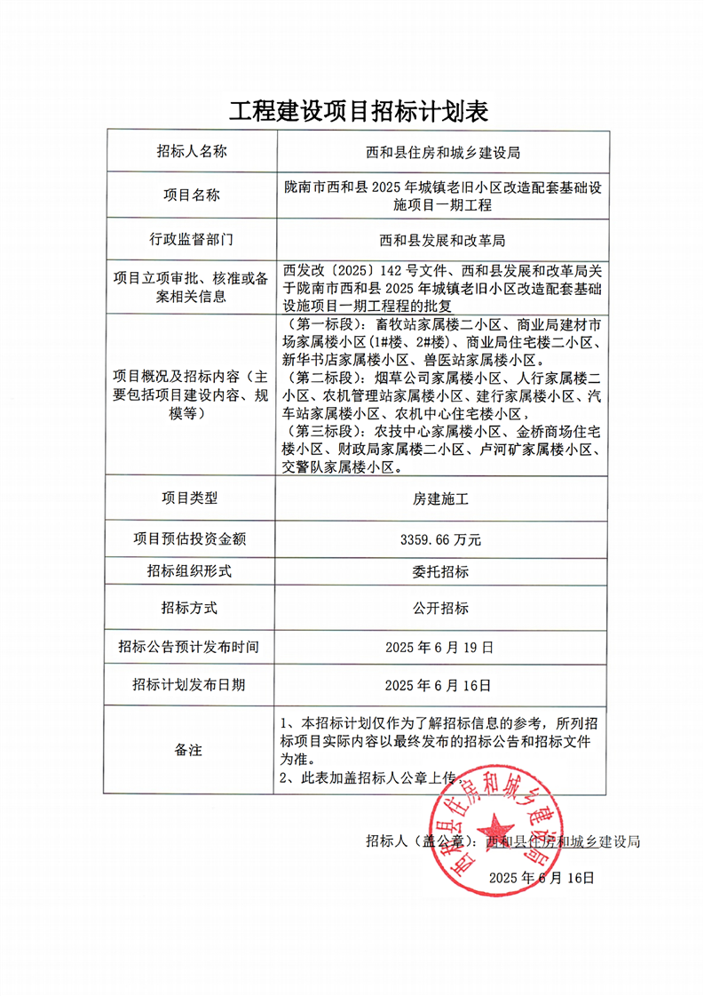 隴南市西和縣2025年城鎮老舊小區改造配套基礎設施項目一期工程