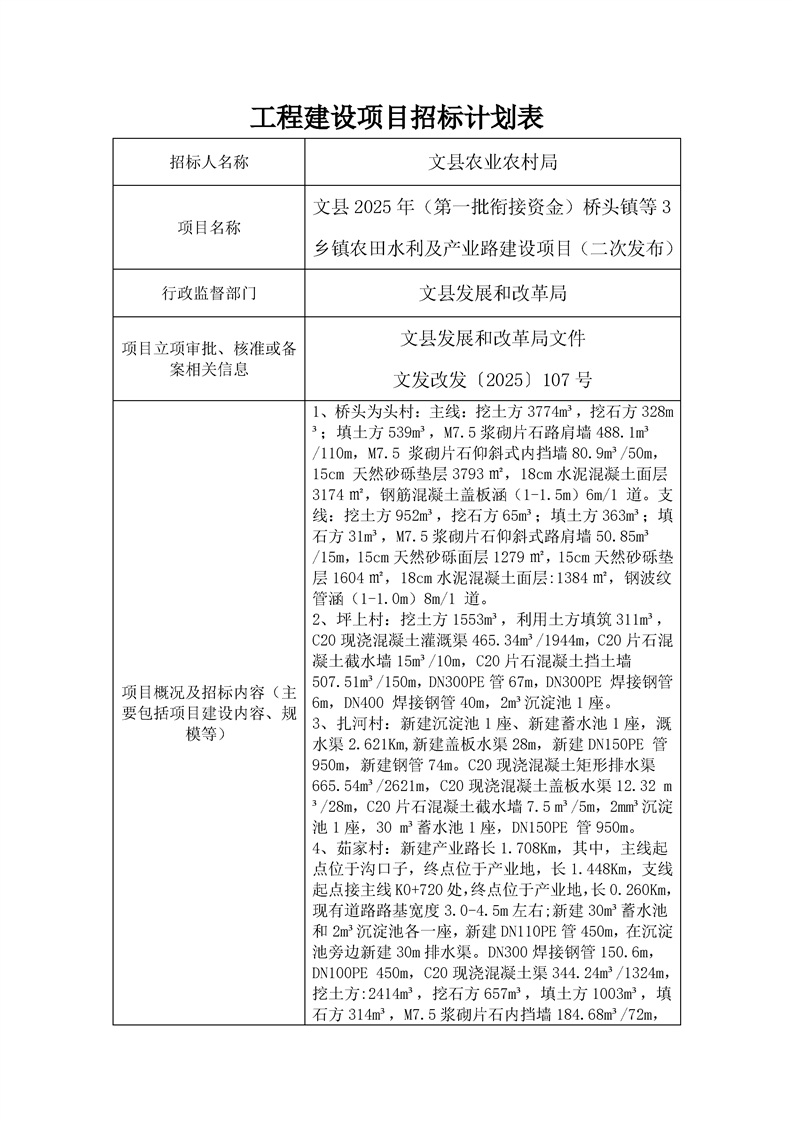 文縣2025年(第一批銜接資金)橋頭鎮等3鄉鎮農田水利及產業路建設項目(二次發布)