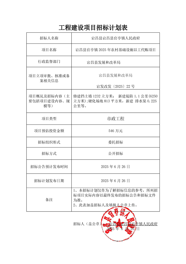 宕昌縣官亭鎮2025年農村基礎設施以工代賑項目