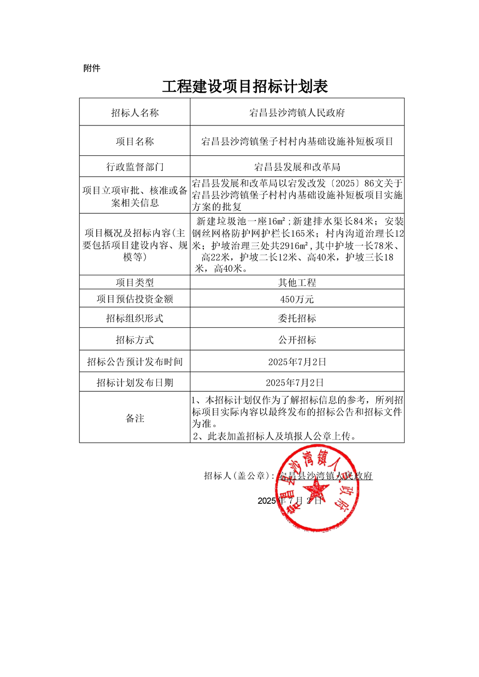 宕昌縣沙灣鎮堡子村村內基礎設施補短板項目