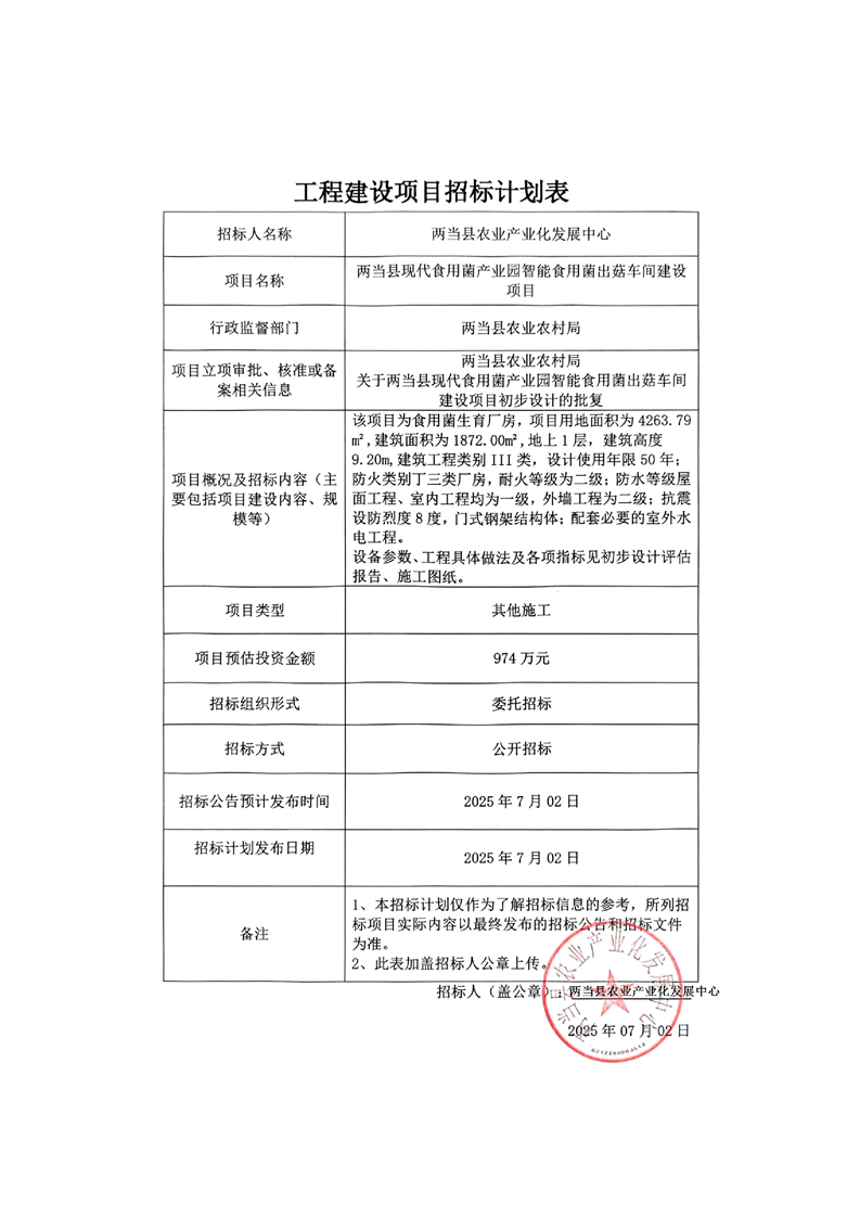 兩當縣現代食用菌產業園智能食用菌出菇車間建設項目