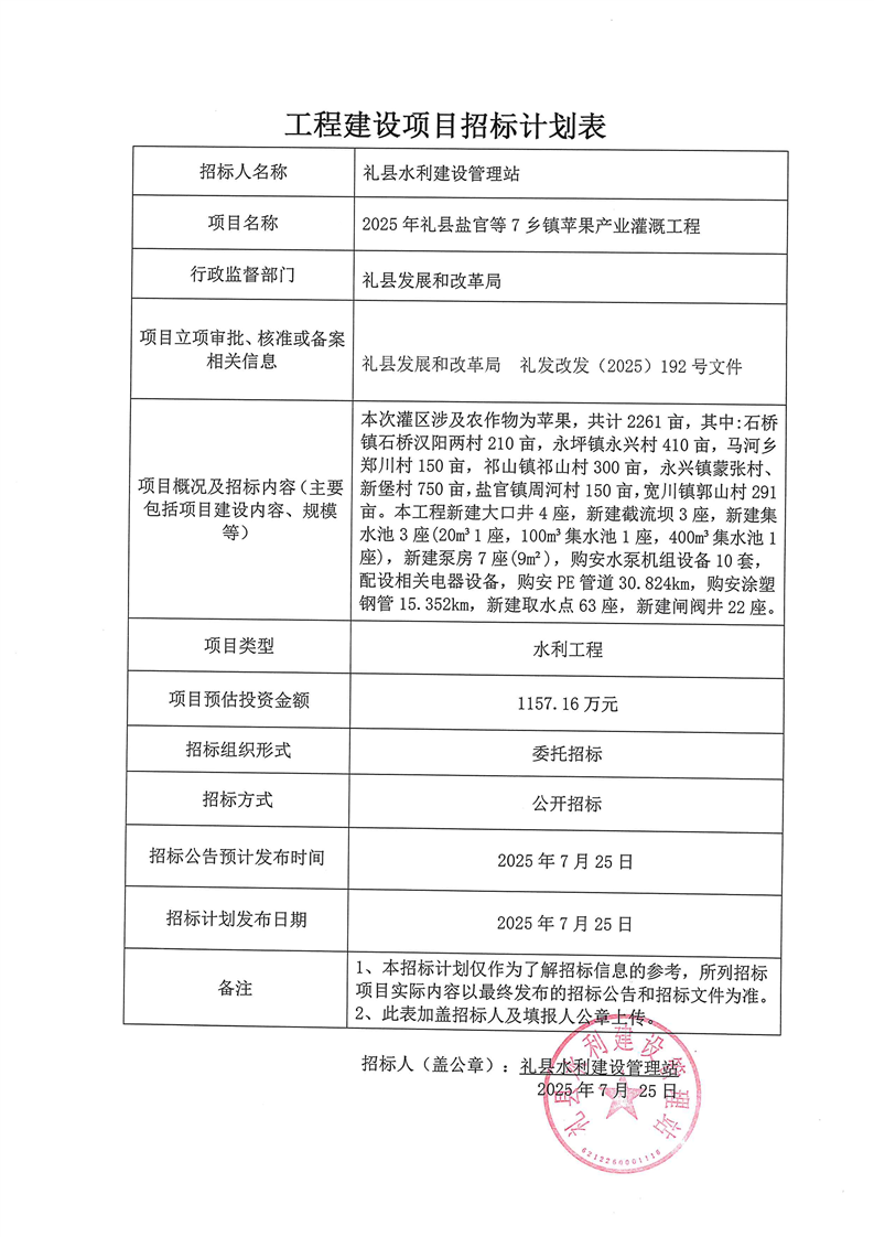 2025年禮縣鹽官等7鄉鎮蘋果產業灌溉工程