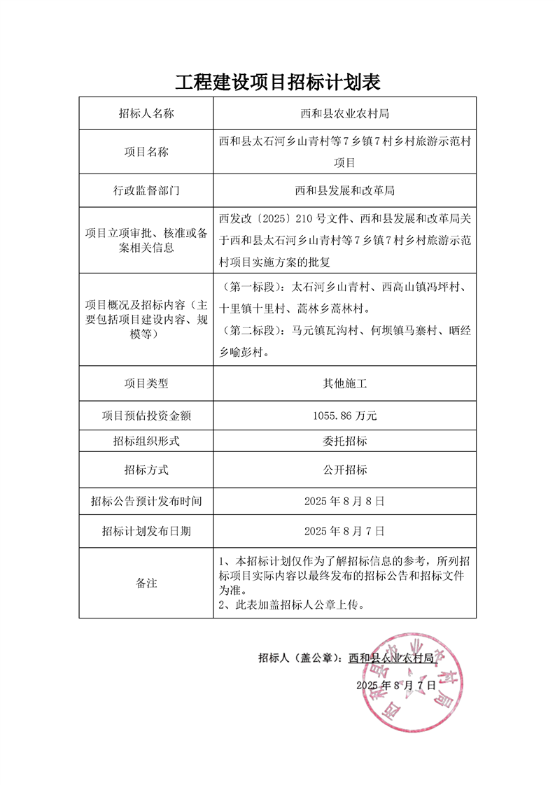 西和縣太石河鄉山青村等7鄉鎮7村鄉村旅游示范村項目