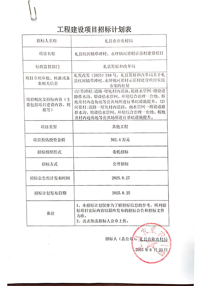 招標計劃-禮縣紅河鎮草灘村、永坪鎮河那村示范村建設項目.pdf