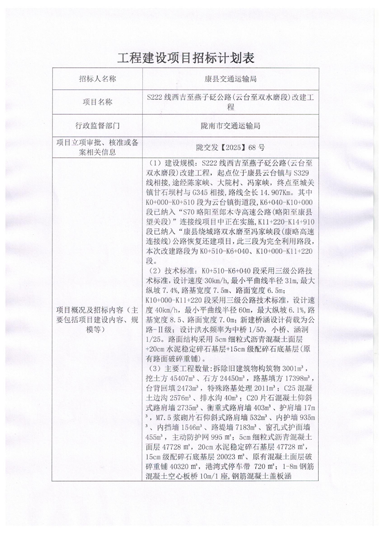 工程建設項目招標計劃表--S222線西吉至燕子砭公路(云臺至雙水磨段)改建工程.pdf