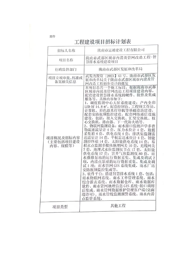 隴南市武都區城市內澇及管網改造工程-智慧排水系統建設項目