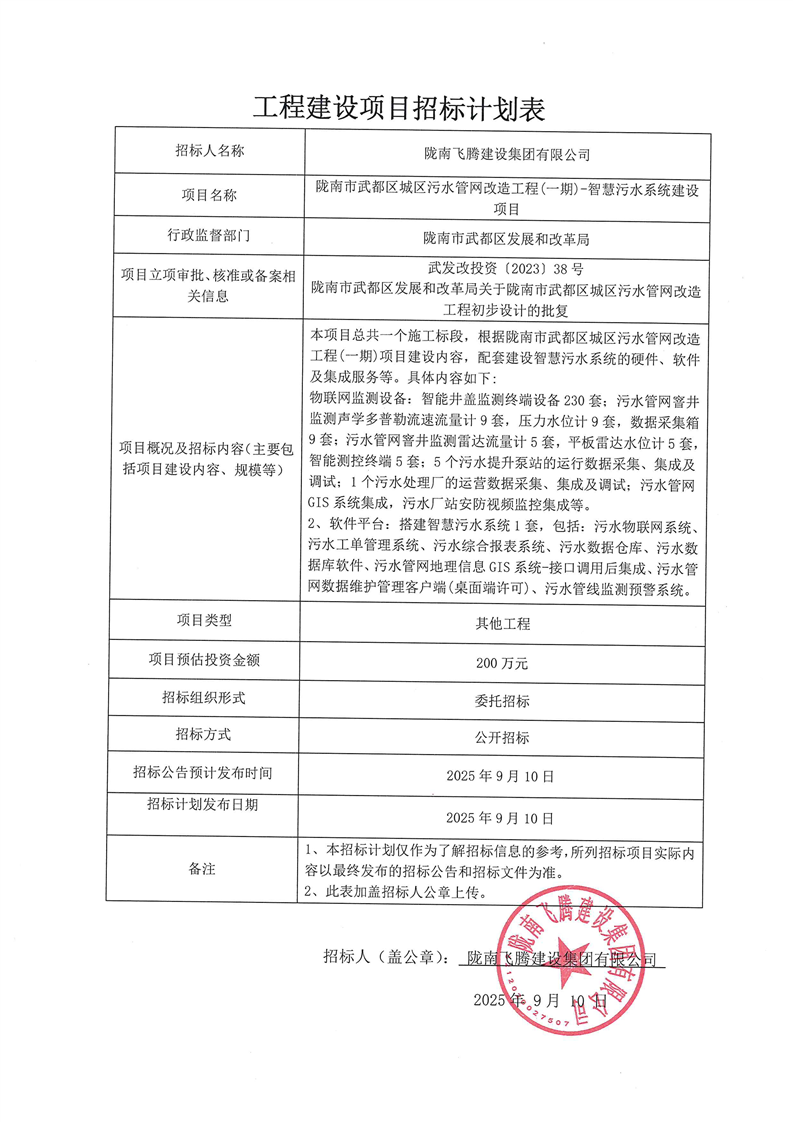 隴南市武都區城區污水管網改造工程(一期)-智慧污水系統建設項目