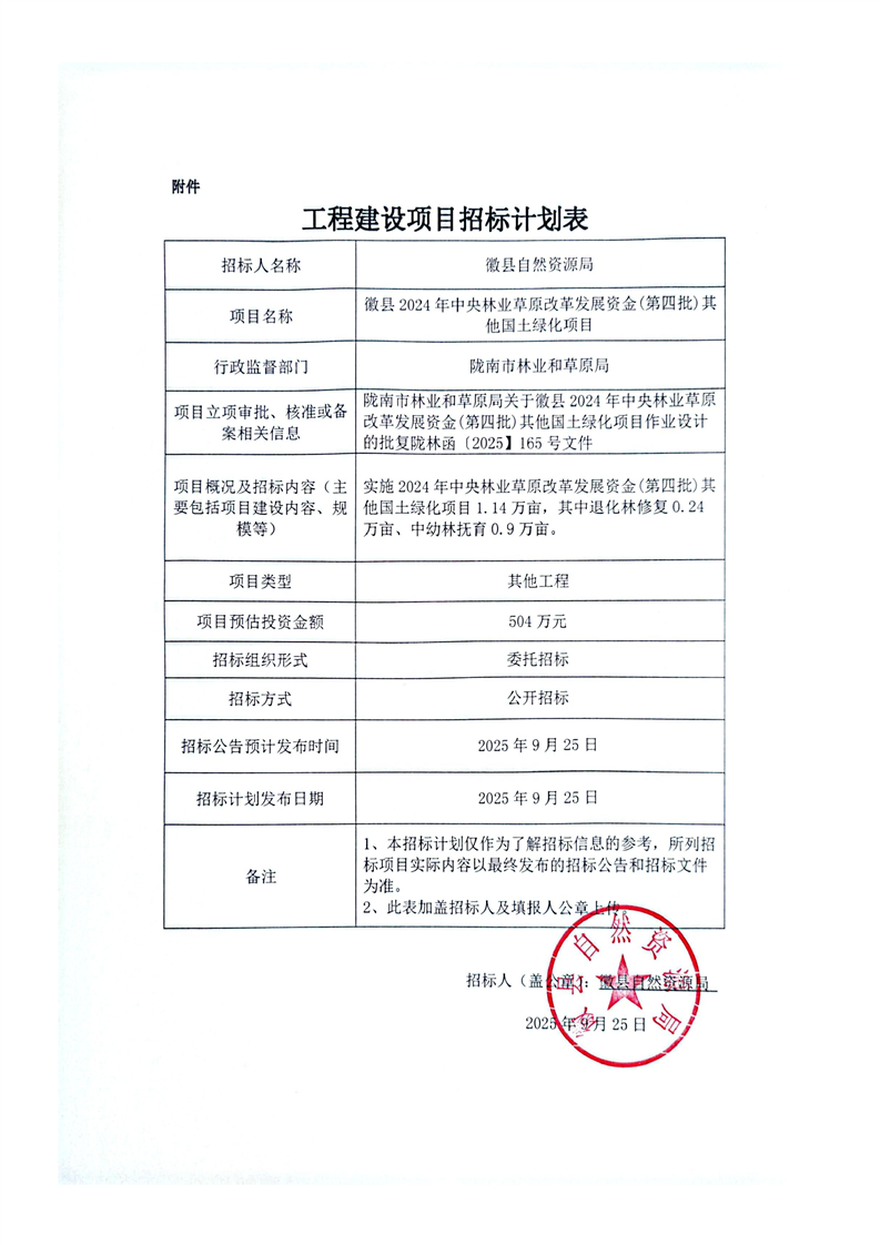 徽縣2024年中央林業(yè)草原改革發(fā)展資金(第四批)其他國土綠化項(xiàng)目