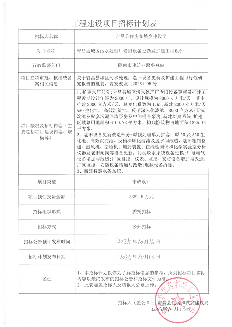 宕昌縣城區污水處理廠老舊設備更新及擴建工程設計