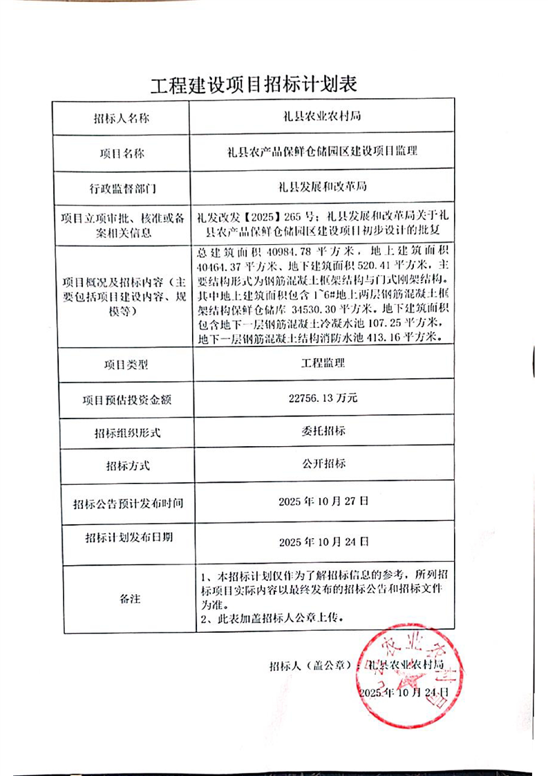 禮縣農產品保鮮倉儲園區建設項目監理