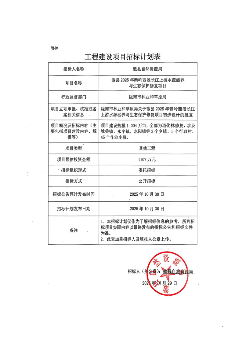 徽縣2025年秦嶺西段長江上游水源涵養與生態保護修復項目