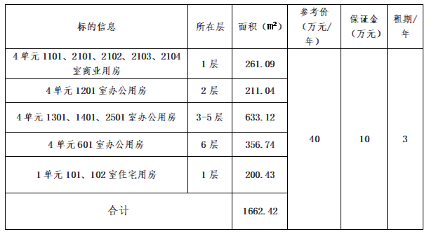 4、本次拍賣按標的物現狀拍賣,標的詳情及其他事項等詳見《辦公及商業房地產租賃權拍賣文件》。