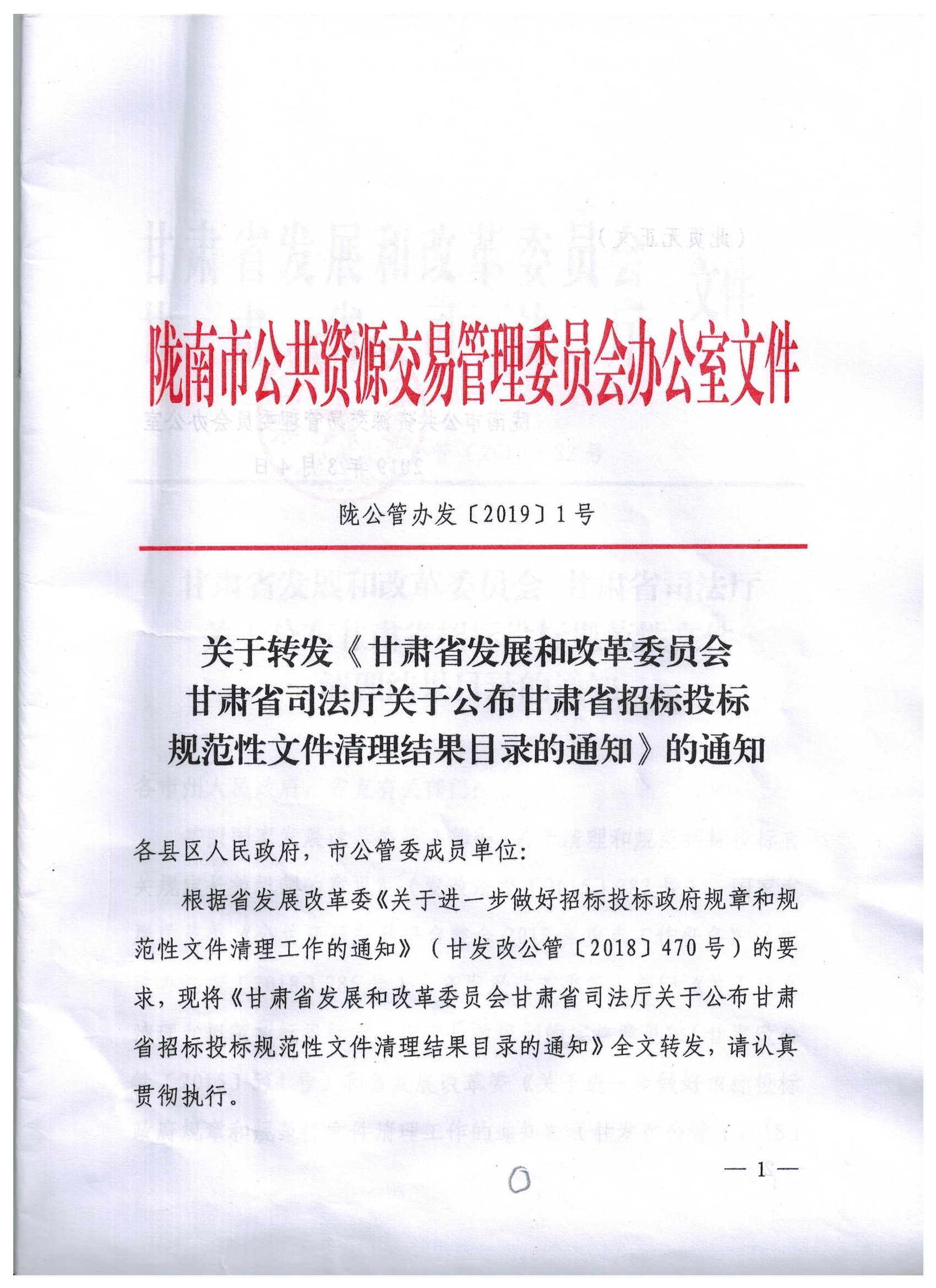 甘肅省發展和改革委員會 甘肅省司法廳關于公布甘肅省招標投標規范性文件清理結果目錄的通知