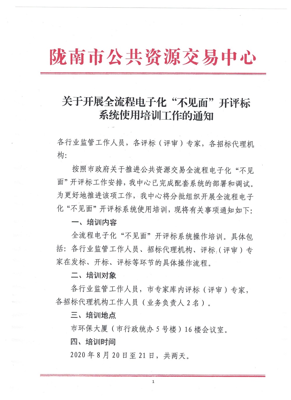 關于開展全流程電子化“不見面”開評標系統使用培訓工作的通知