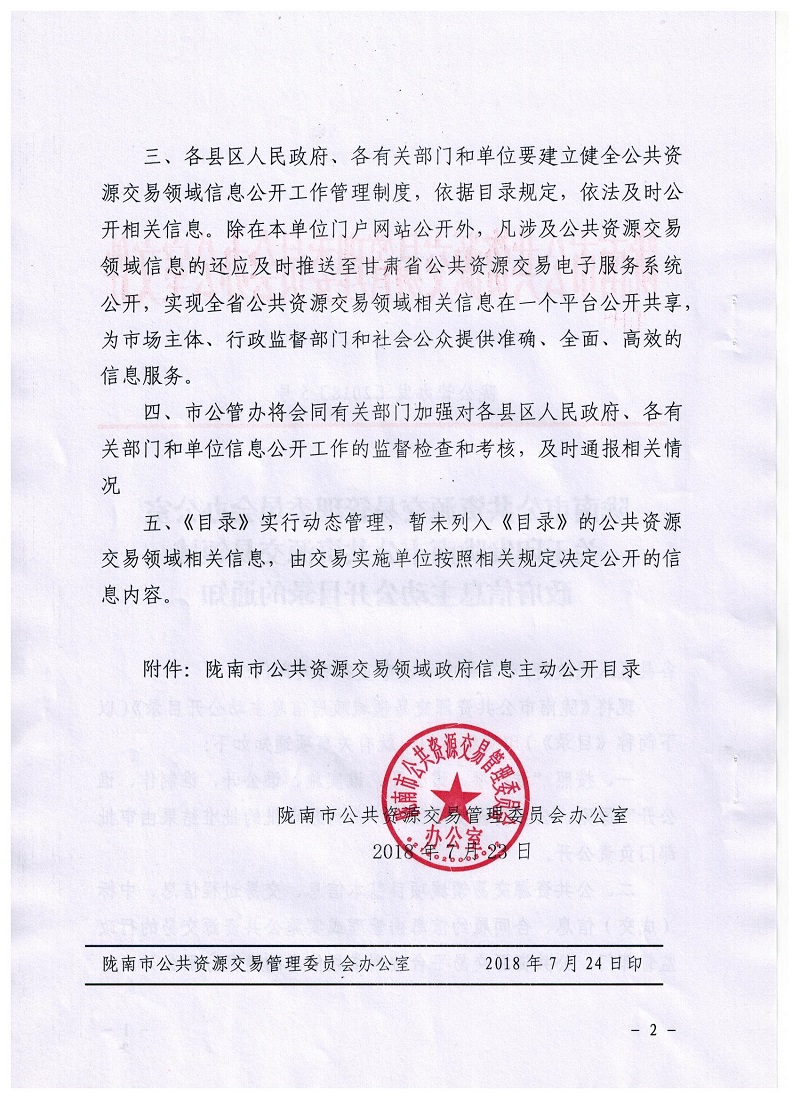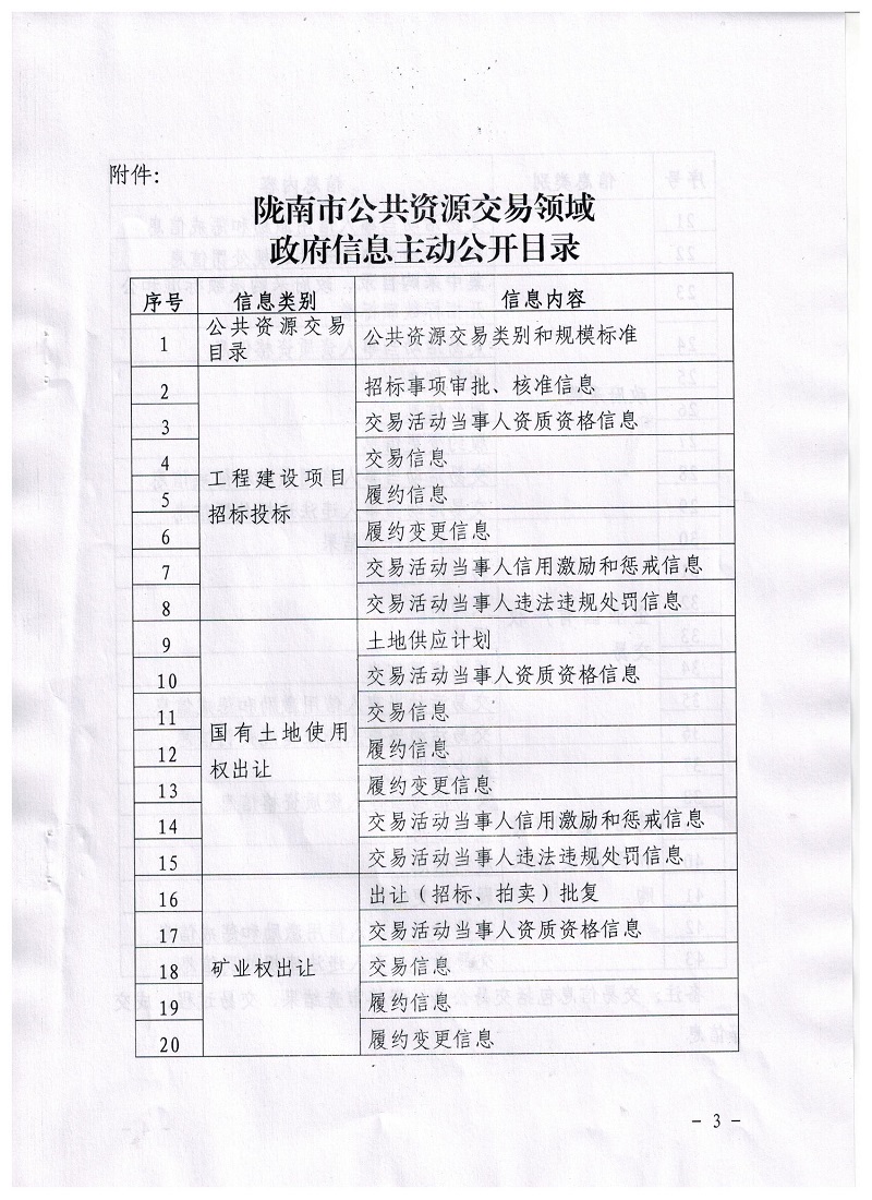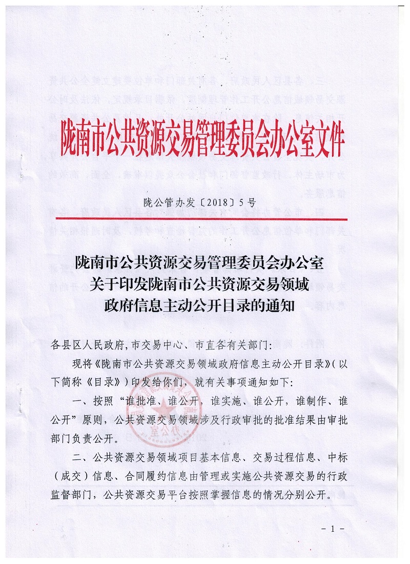 隴南市公共資源交易管理委員會辦公室關于印發隴南市公共資源交易領域政府信息主動公開目錄的通知